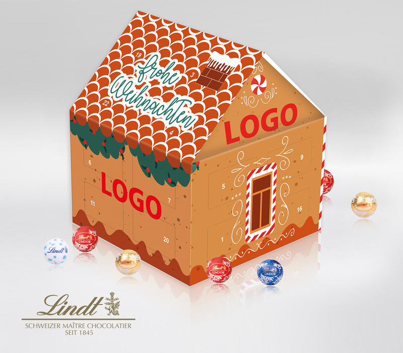 Hochwertiger Adventskalender mit Schokolade aus dem Hause Lindt & Sprüngli, einzeln in Klarsicht-Verpackung