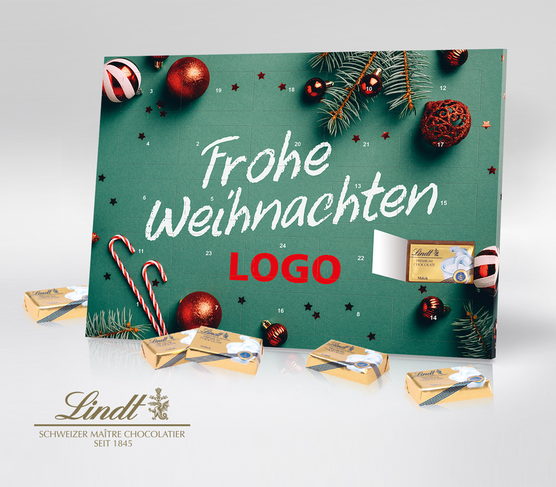 Hochwertiger Adventskalender mit Schokolade aus dem Hause Lindt & Sprüngli, einzeln in Klarsicht-Verpackung